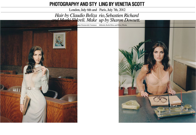 shot and styled by venetia scott her new self service story features daphne groeneveld, constance jablonski, karlie kloss and hilary rhoda.